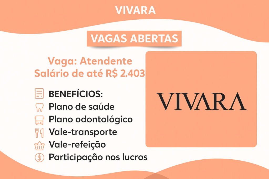 As vagas temporárias nas Lojas Vivara representam uma excelente oportunidade para quem busca trabalho imediato, aprendizado e crescimento em uma empresa líder no segmento de luxo. A inscrição é simples, online e aberta para diversos perfis. Se você deseja fazer parte de uma equipe dinâmica e expandir suas competências, não deixe de se cadastrar para as vagas de Black Friday e Natal 2025.